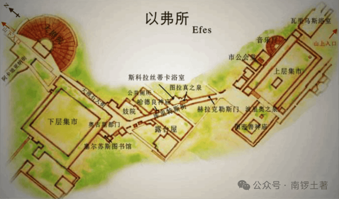 以弗所早期是古希腊城市,罗马帝国时期,它是亚细亚省的首府和罗马总督驻地,被誉为“亚洲第一个和最大的大都会”,是罗马帝国中仅次于罗马的第二大城市它是罗马亚洲行省的首府,人口约25万。这里也是陆路、海路经济往来的重要中转站,留有当年的物资交流市场遗迹。公元6世纪,因港口被泥沙淤满,经济受创而逐渐被放弃。