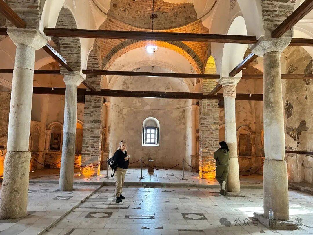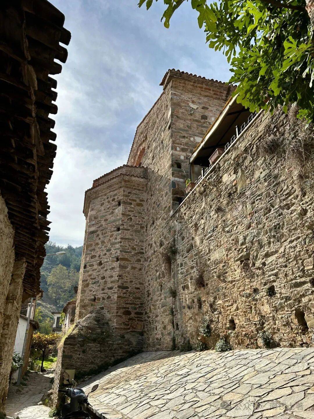 小镇有一座圣约翰施洗教堂(St. John the Baptist Church),属于拜占庭建筑风格,是一座复合式的“十字方厅”教堂,外部由石块与砖块混合砌成,墙体厚重且带有防御性特征,展现出拜占庭后期建筑的古朴与坚固。该教堂建于14世纪初,曾是一座修道院的主教堂,内部保留着极具艺术价值的马赛克和壁画(虽部分在历史中被覆盖,后经修复),是拜占庭晚期艺术的杰出代表之一。教堂内部可见多根古老石柱支撑着拱顶,墙面保留着岁月侵蚀的痕迹,部分区域还能看到残存的壁画,地面铺有带有几何图案的大理石地砖。建筑采用拜占庭式的穹顶与拱券设计,光线透过穹顶的小窗洒入,营造出古朴而神圣的氛围。