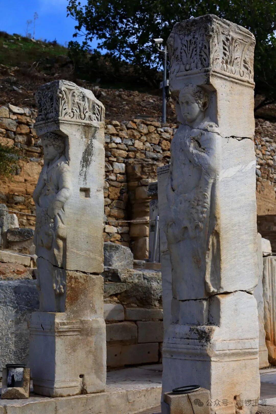 虽然大剧场正在维修不能入内,站在远处眺望这雄伟的建筑,想起《使徒行传》里的记载:当年银匠们正是在此聚集,高呼“大哉,以弗所人的亚底米啊”,抗议使徒保罗的布道动摇了神庙的权威。几只鸽子从拱券间掠过,翅膀的阴影落在石座上,那里或许曾坐着观看角斗士搏斗的罗马总督。