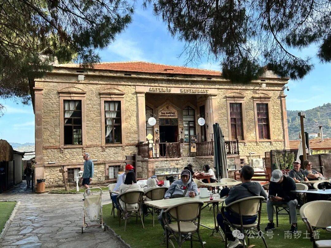 阿尔忒弥斯餐厅(Artemis Restaurant)是小镇为数不多的古迹,建筑由石块砌成,风格古朴,曾是一座古老的石质学校(Taş Mektep),如今改造为集餐饮、品酒于一体的场所,保留了历史建筑的厚重感,红瓦屋顶与石墙搭配,充满复古韵味。这里既是餐馆,也是酒庄,提供土耳其传统美食和特色果酒品鉴,我们也品尝了三种不同的果酒。这里也是小镇难得的一块平地,可以在此休憩、用餐,周围绿树环绕,氛围惬意,是希林杰小镇极具人气的网红打卡地。