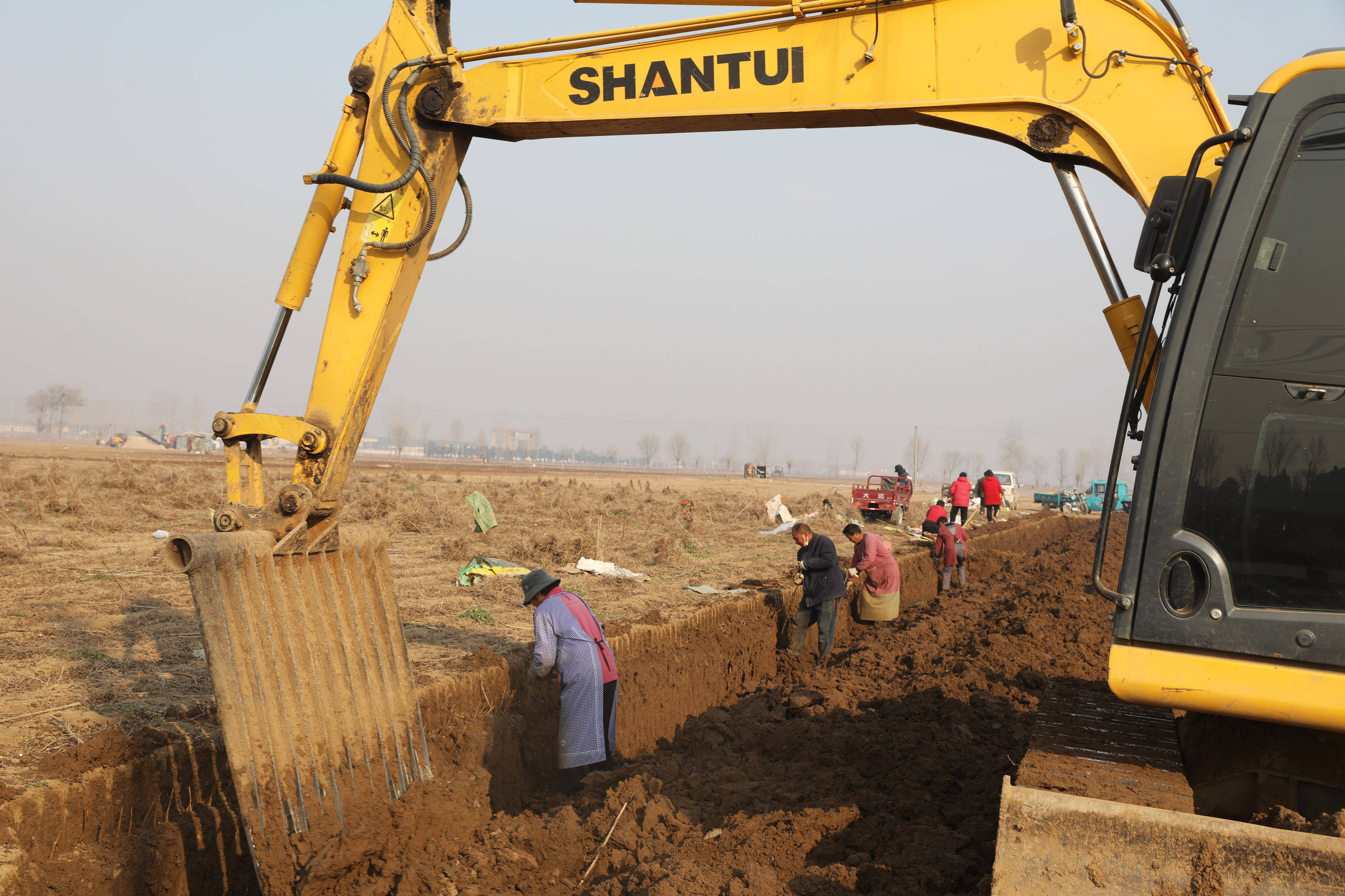12月11日,河南省焦作市温县番田镇白沟作村农民在山药种植基地收获铁棍山药。 新华社发(徐宏星摄)