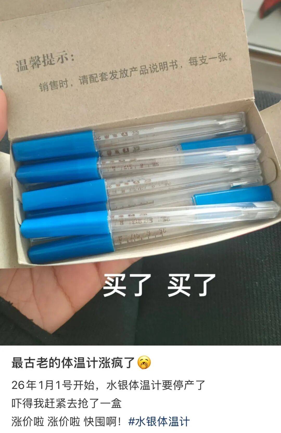 “水银体温计涨价了