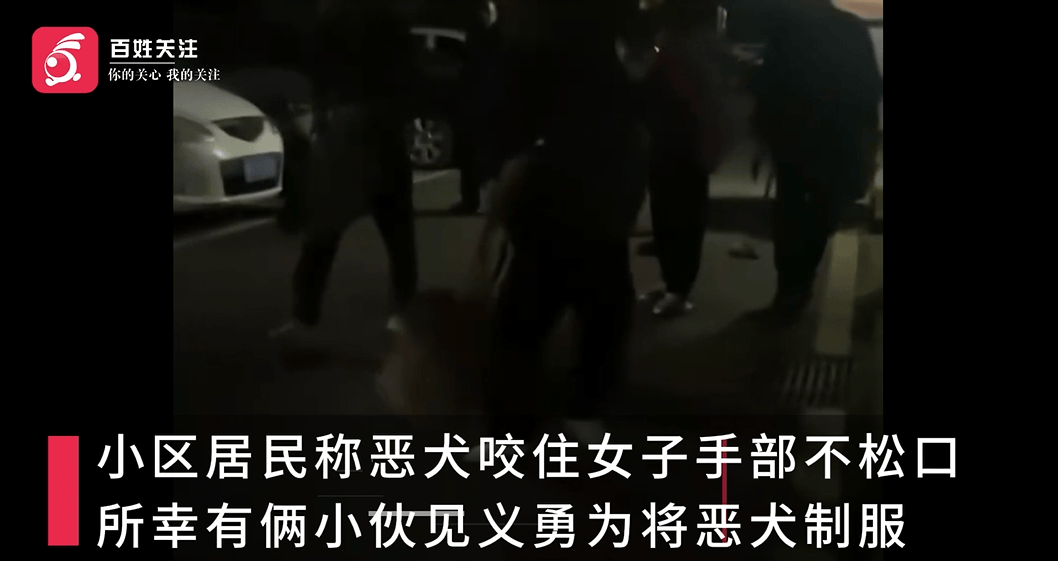 小区居民称,当时听到有人发出很惨烈的叫声,被咬女子是四五十岁的阿姨,恶犬攻击力特别强,咬住女子手部不松口,所幸有两位小伙见义勇为将恶犬制服,但两人在救援过程中也被咬伤。