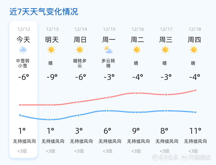 未来三天,泰安天气以晴转多云为主,气温逐渐回升。周日最高气温3℃,最低-6℃;周一最高6℃,最低-3℃;周二至周四气温进一步回升,最高可达11℃。建议市民根据天气变化适时增减衣物,尤其是年老体弱者和儿童,需特别注意防寒保暖。