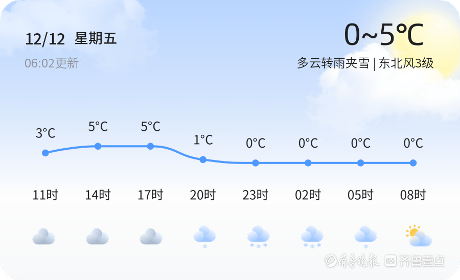 今天是12月12日,农历十月廿三,枣庄市迎来多云转雨夹雪天气。当前气温为-0.7℃,东北风3级,空气湿度57%,空气质量为优。市民出行请注意保暖,携带雨具,注意交通安全。