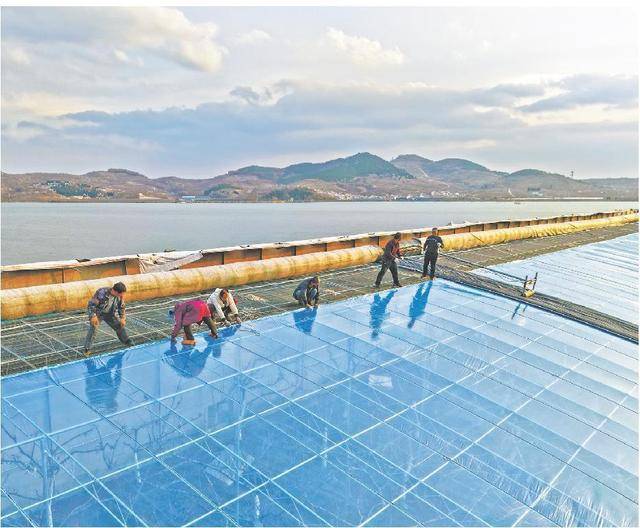 新华社发 12月11日,在烟台市福山区张格庄镇,农民为樱桃大棚更换新的塑料薄膜。