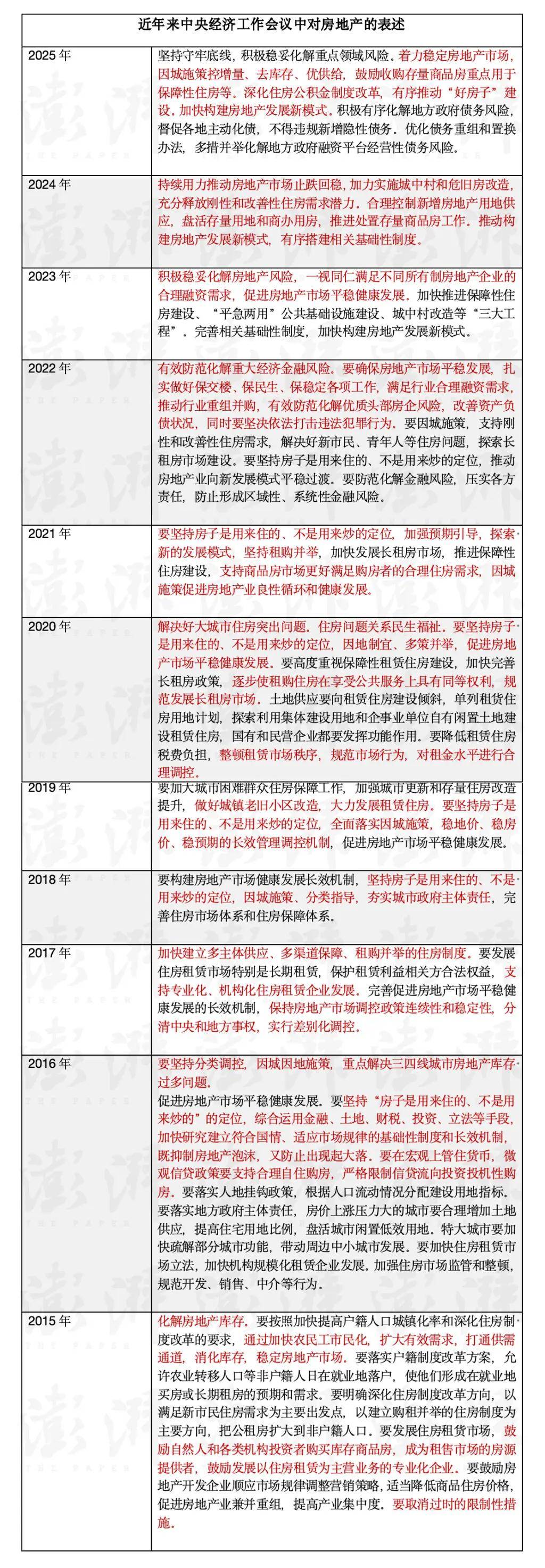 从过去五年来中央经济工作会议涉房内容可以梳理出,“稳楼市”是不变的核心内容。