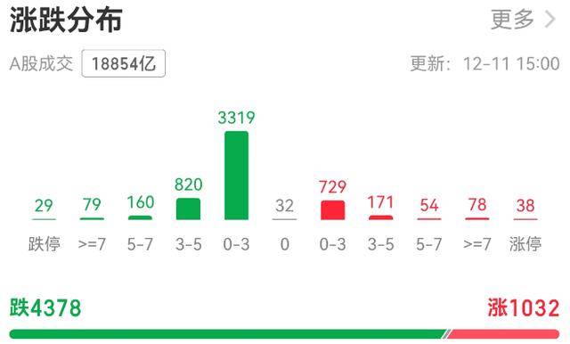 个股层面,收盘时全市场下跌个股达4378只,其中29只个股跌停;上涨个股仅1032只,其中38只个股涨停。