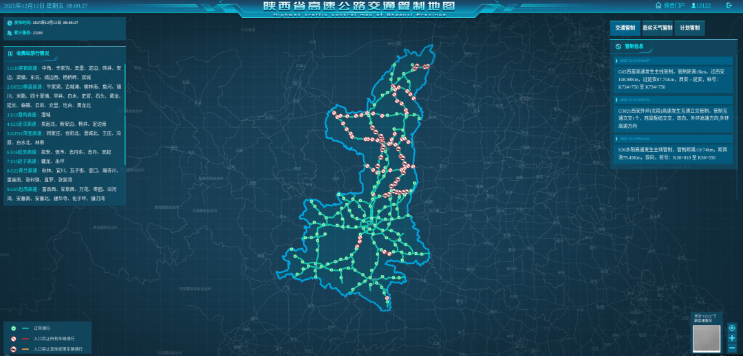 9.包茂高速西富段延安方向半截沟连接线转延西高速延安方向匝道临时管控,黄陵西、隆坊、羊泉收费站入口临时管控。
