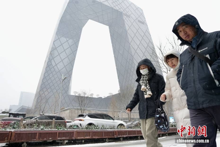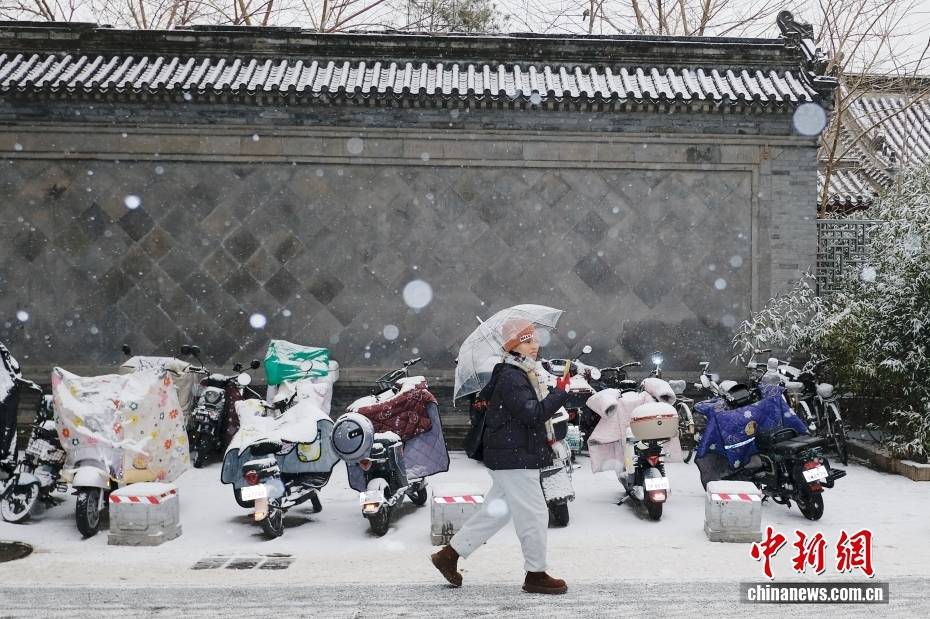 12月12日,北京城区迎来降雪天气,市民冒雪出行。中新社记者 陈芳婷 摄