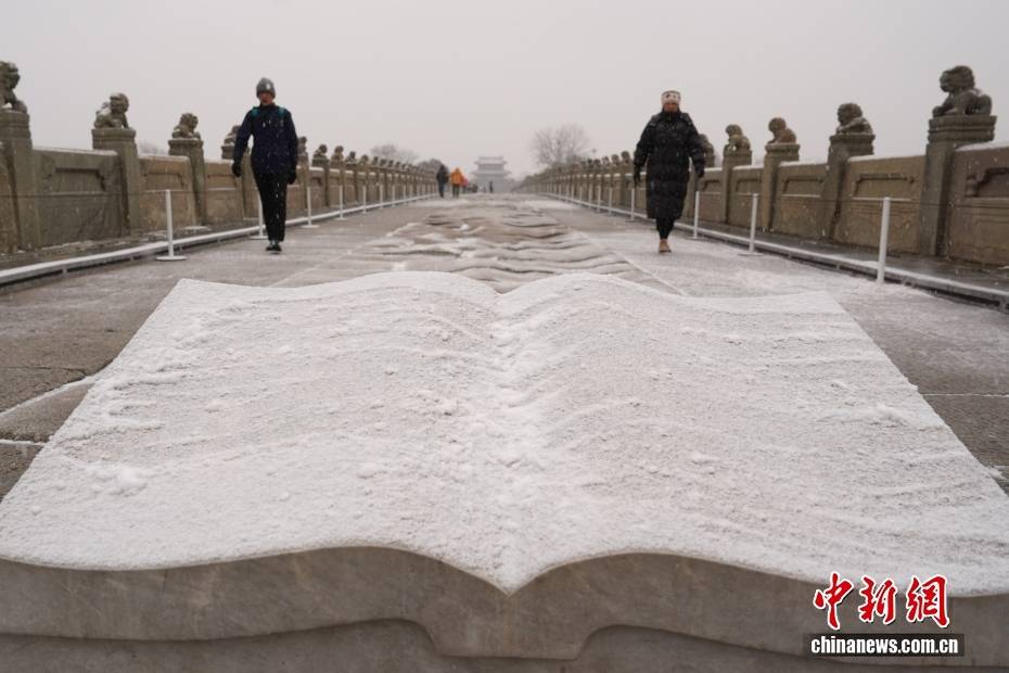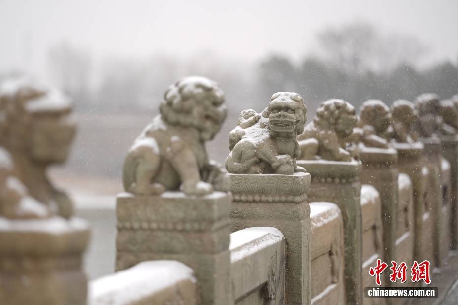12月12日,北京市迎来2025年入冬以来首场降雪,雪中的卢沟桥银装素裹。中新社记者 蒋启明 摄