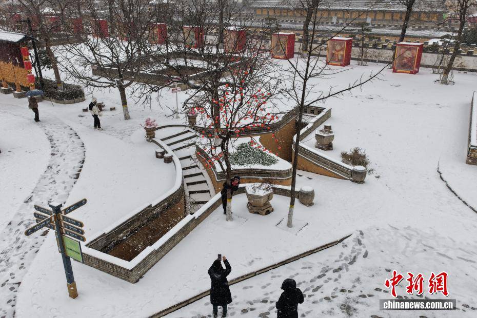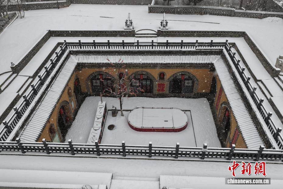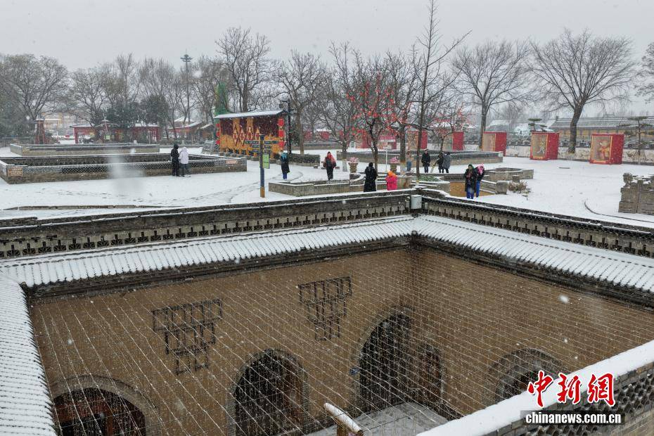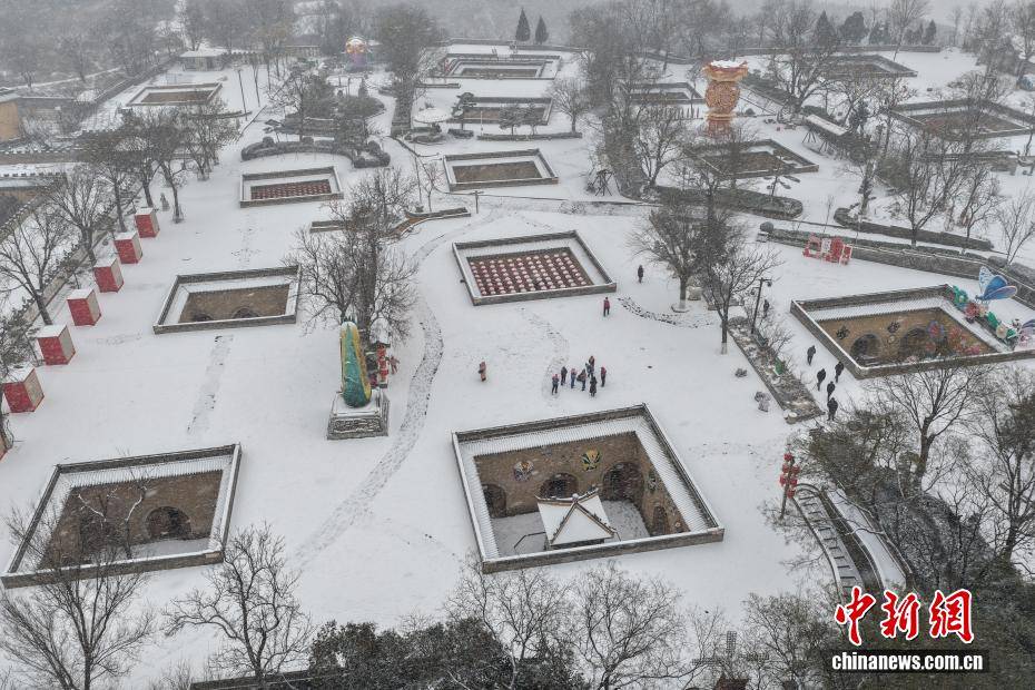 12月12日,一场降雪过后,河南三门峡陕州地坑院银装素裹。作为中国传统村落的典型代表,陕州地坑院堪称“地平线下古村落,人类穴居活化石”。图为雪后地坑院。(无人机照片)何东阁 摄