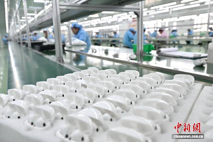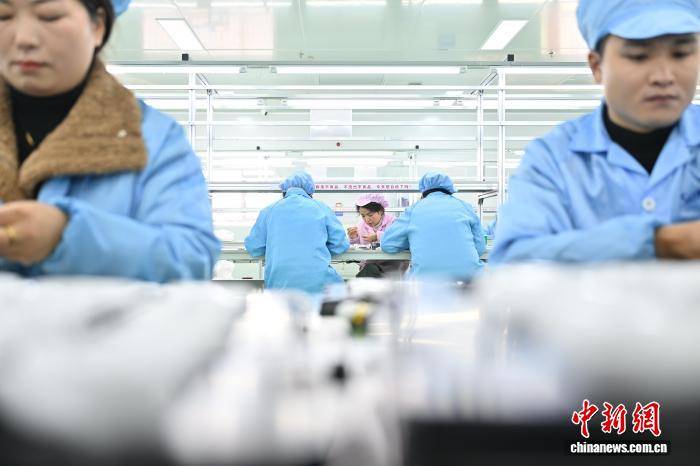 临近年终,河南商丘梁园区商丘集美数智产业园,工人在蓝牙耳机生产线上赶制出口海外的订单。图为12月11日工人在生产线上组装耳机。 李恒 摄