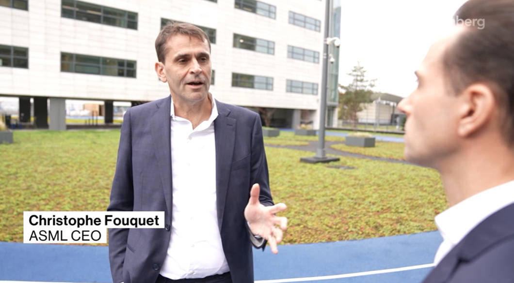 阿斯麦首席执行官克里斯托夫·富凯(左)。彭博社视频截图
