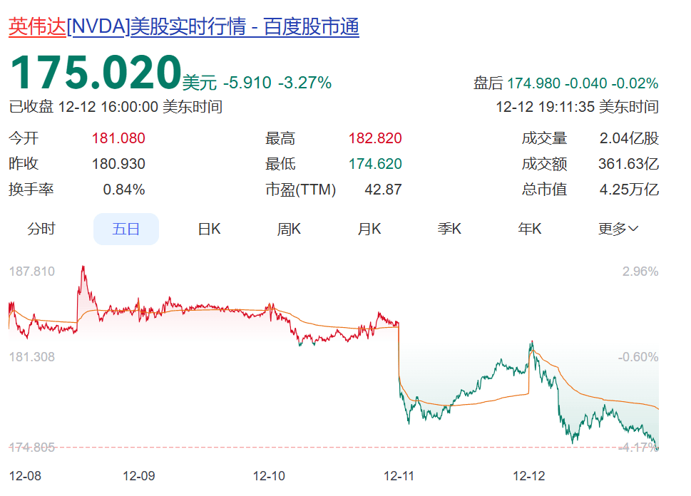当地时间12月12日,美股三大指数集体收跌,道指跌0.51%,本周累计上涨1.05%;纳指跌1.69%,本周累计下跌1.62%;标普500指数跌1.07%,本周累计下跌0.63%。超3800股下跌。
