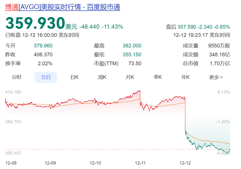 博通跌超11%。当地时间12月11日,博通四季度财报显示,公司销售额为180亿美元,同比增长28%,分析师预期为175亿美元。其中,半导体业务营收为110.7亿美元,同比增长34.5%;基础设施业务营收增长19%,达到69.4亿美元。但公司高管在电话会议上的言论导致市场开始担忧利润率疲软以及OpenAI合同短期内无法带来收入。