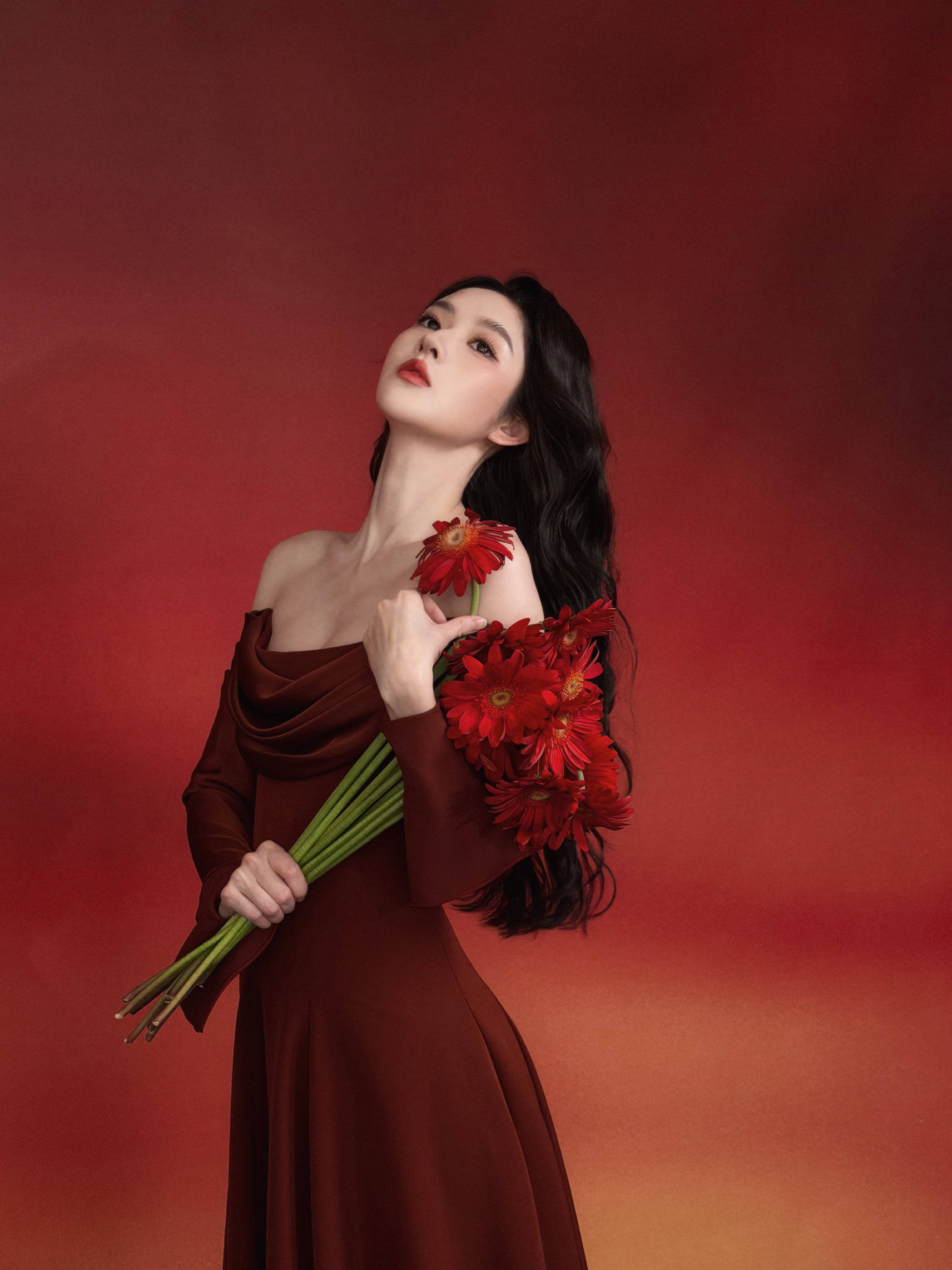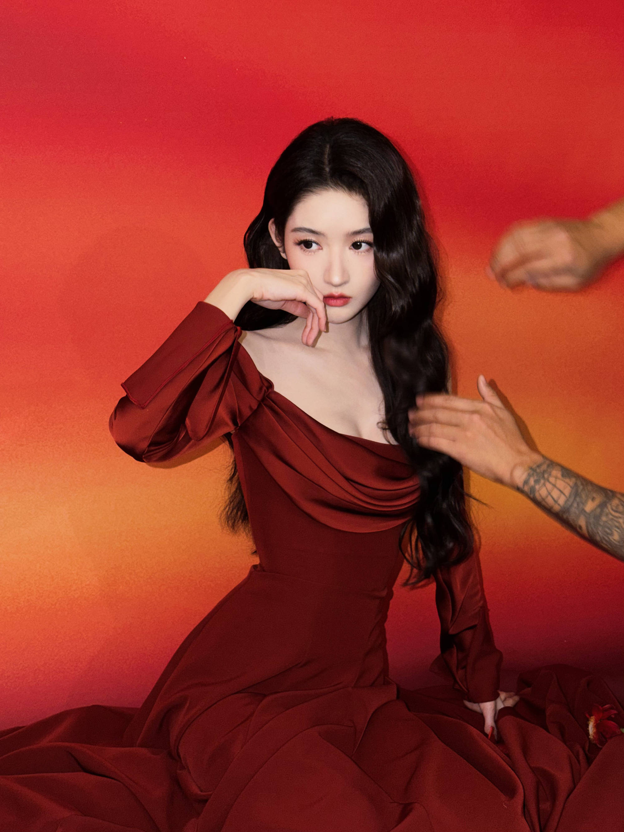 红色长裙衬得王玉雯的肌肤格外雪白。