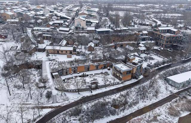 焦作孟州市西虢镇莫沟村,白雪铺满窑洞屋顶。