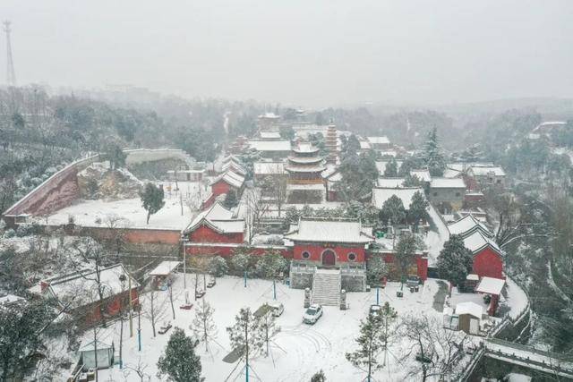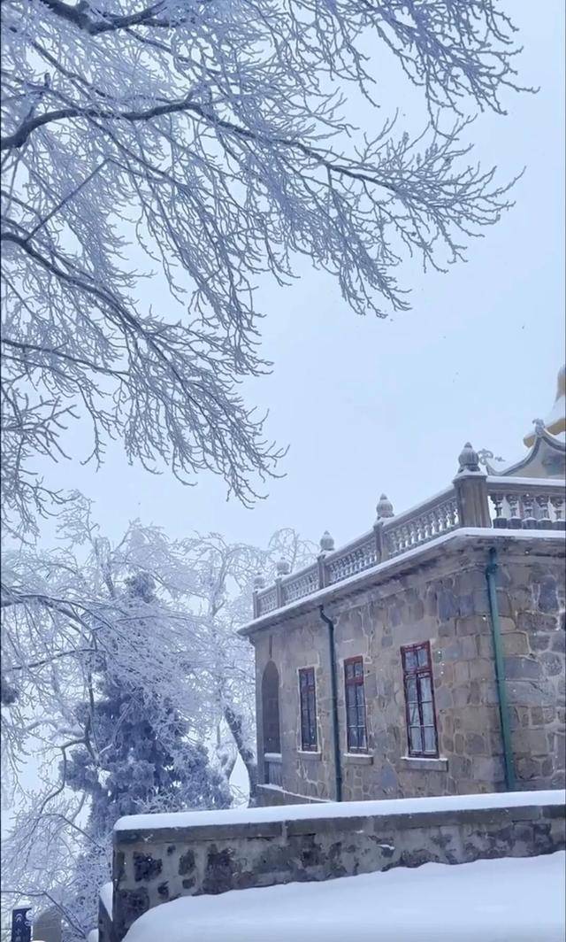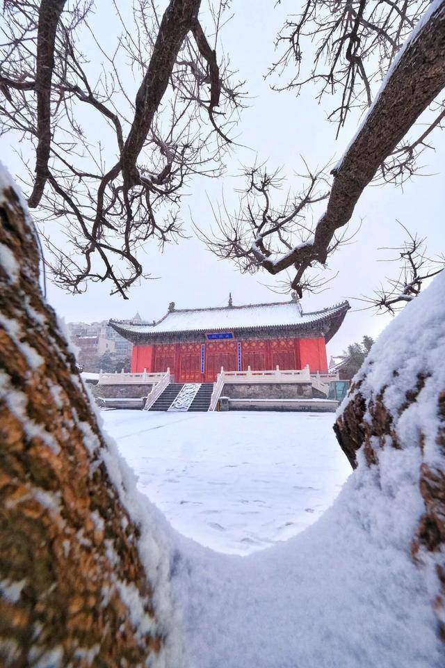 古建披上银装,飞檐翘角凝霜挂玉