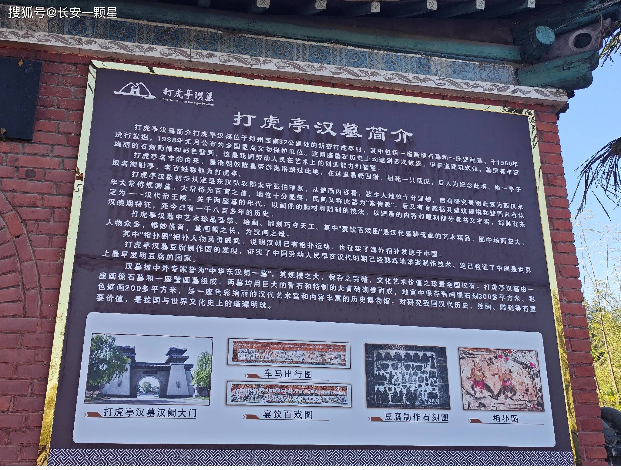 驱车一百多公里,俺来到了新密的打虎亭汉墓参观游览。提前也没有做足功课,原以为此处是和老虎有关联,看了门口的简介,才知道它所在的位置是打虎亭村,故得此名。