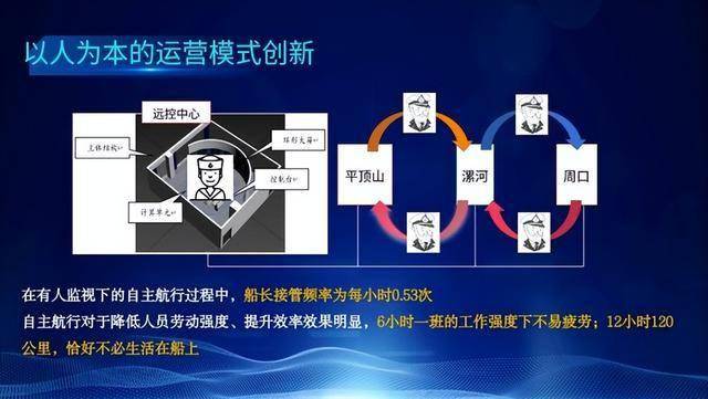为了让效率与关怀并行,我们创新提出了“上船即工作、休息即下船”的运营模式,让船员不再长期漂泊,可以像普通职工一样工作、下班、回家,把家重新变成家。船的操控难题则交给智能系统,让科技替人承担繁重压力。
