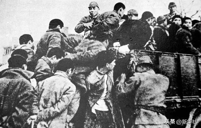 日军将大批南京青壮年捆绑后,押往郊外集体屠杀。新华社发