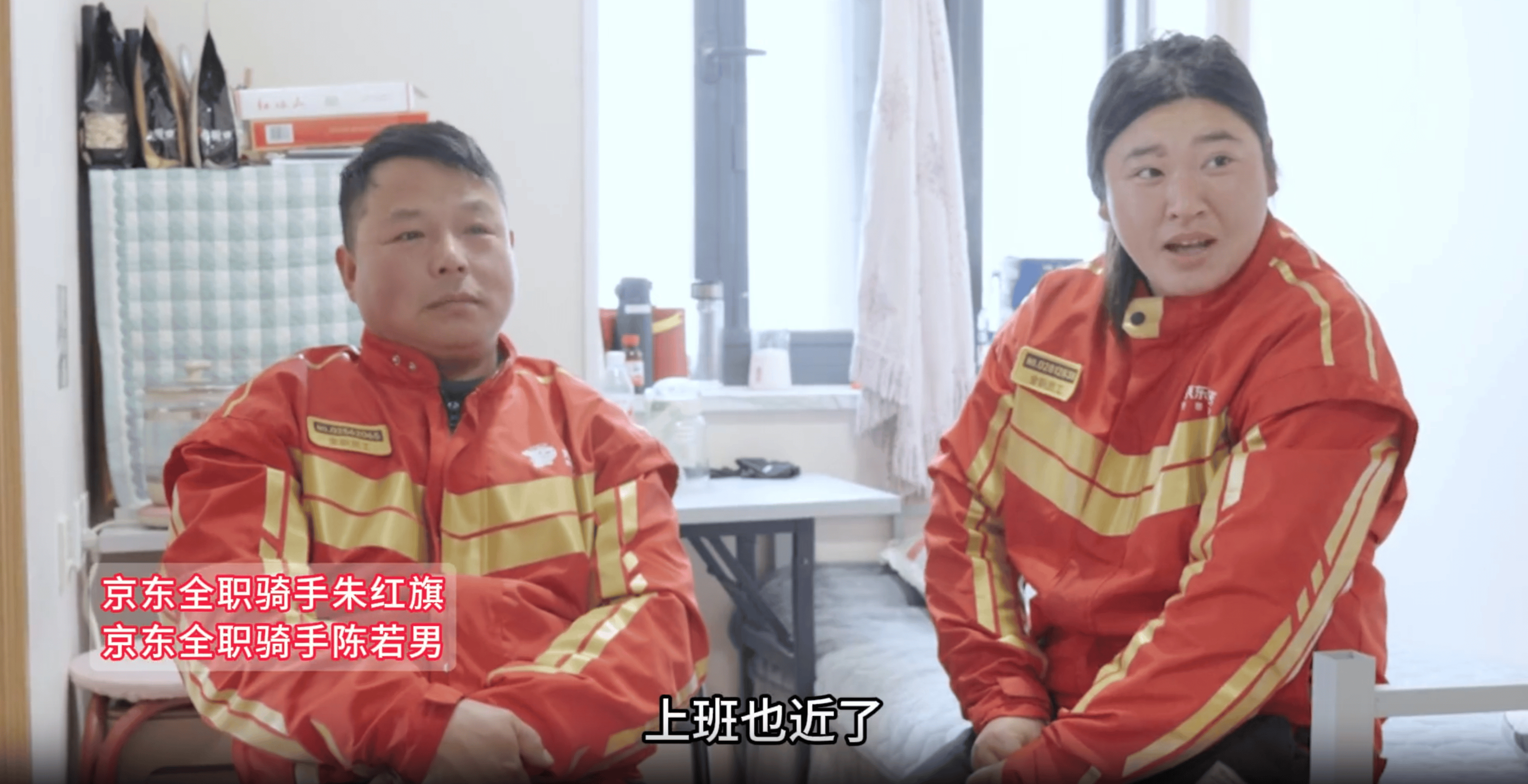 骑手夫妇朱红旗和陈若男之前住村里出租屋,冬天冻得直哆嗦,现在住这儿,配送范围就在小区附近,中午还能回来打个盹,孩子放假来北京也有地方住,一家人团聚多开心。