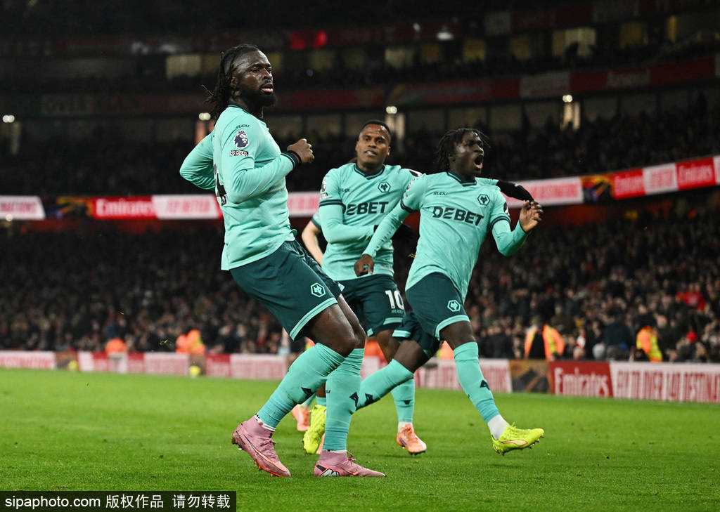 第90分钟,狼队扳平比分!马特乌斯-马内在左路似传似射的扫向禁区,阿洛科达尔跟进头球破门,狼队1-1阿森纳。