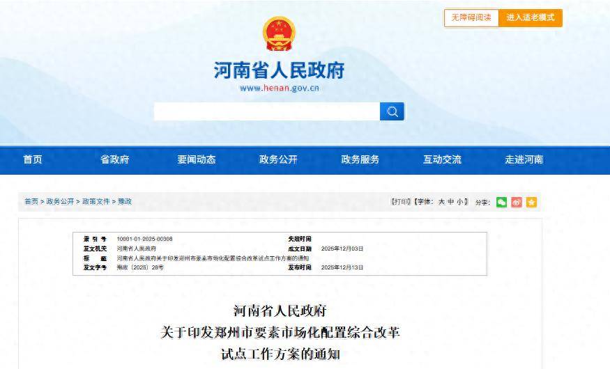 为落实国家部署,河南省政府发布郑州市要素市场化配置综合改革试点工作方案的通知,破除阻碍要素自由流动和高效配置的体制机制障碍,探索形成一批可复制可推广的制度性创新成果。