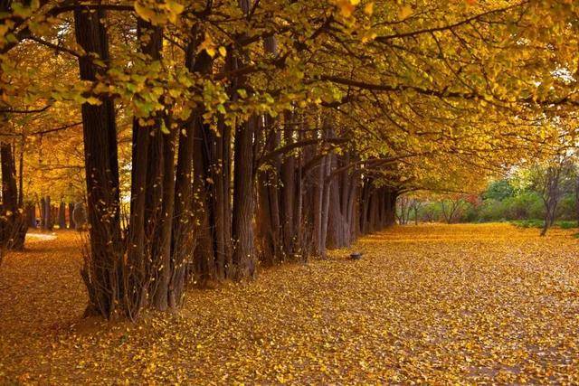 郑州植物园的西北角有银杏园,这里种植着大量的银杏树,每到银杏变黄的时候,落下的银杏铺满地面,像是一片金黄色的海洋。