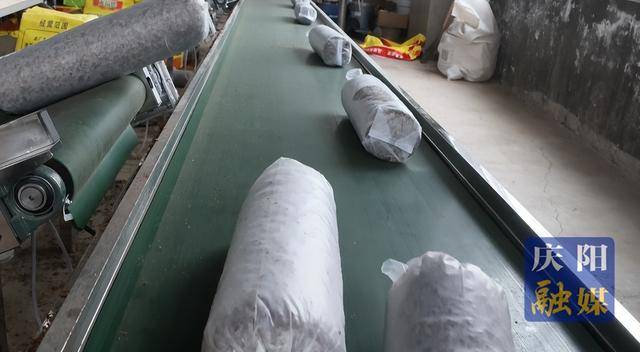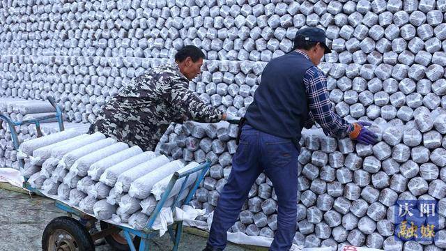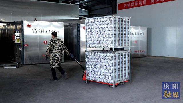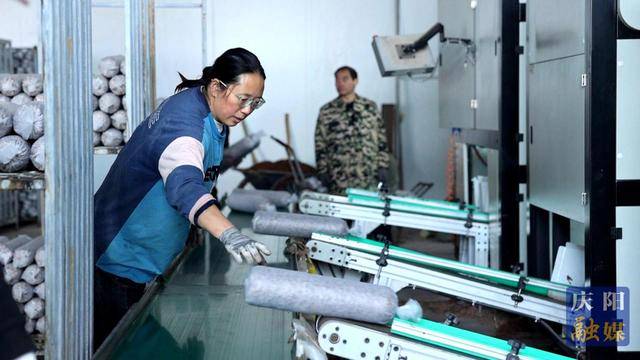 在华池县闽辉农业科技有限公司的菌棒生产车间内,机器轰鸣作响,工人们正有条不紊地进行菌棒装袋、分拣等作业。