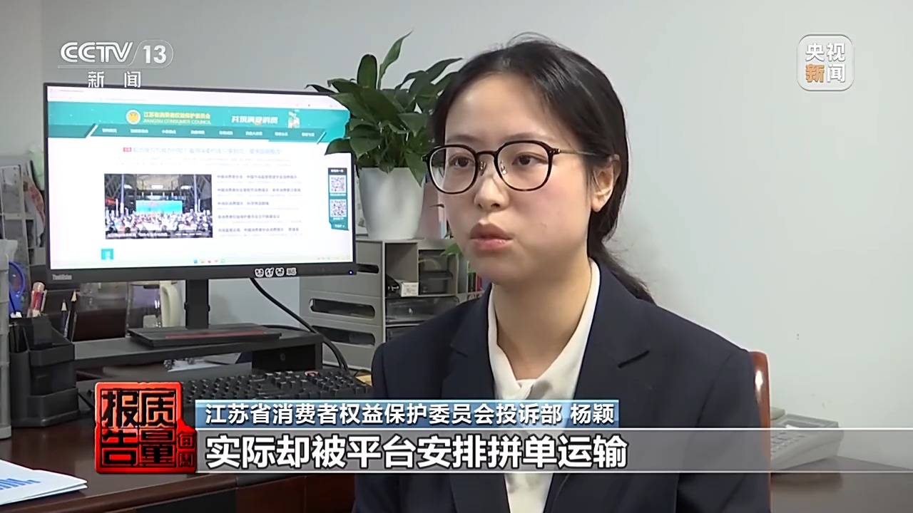江苏省消费者权益保护委员会投诉部 杨颖:明确下单一对一专送,实际却被平台安排拼单运输,有消费者和司机反映,平台有时会存在实时定位偏差的问题,显示的位置与实际相差数公里,可能因为里程偏差,导致后续产生运费争议。