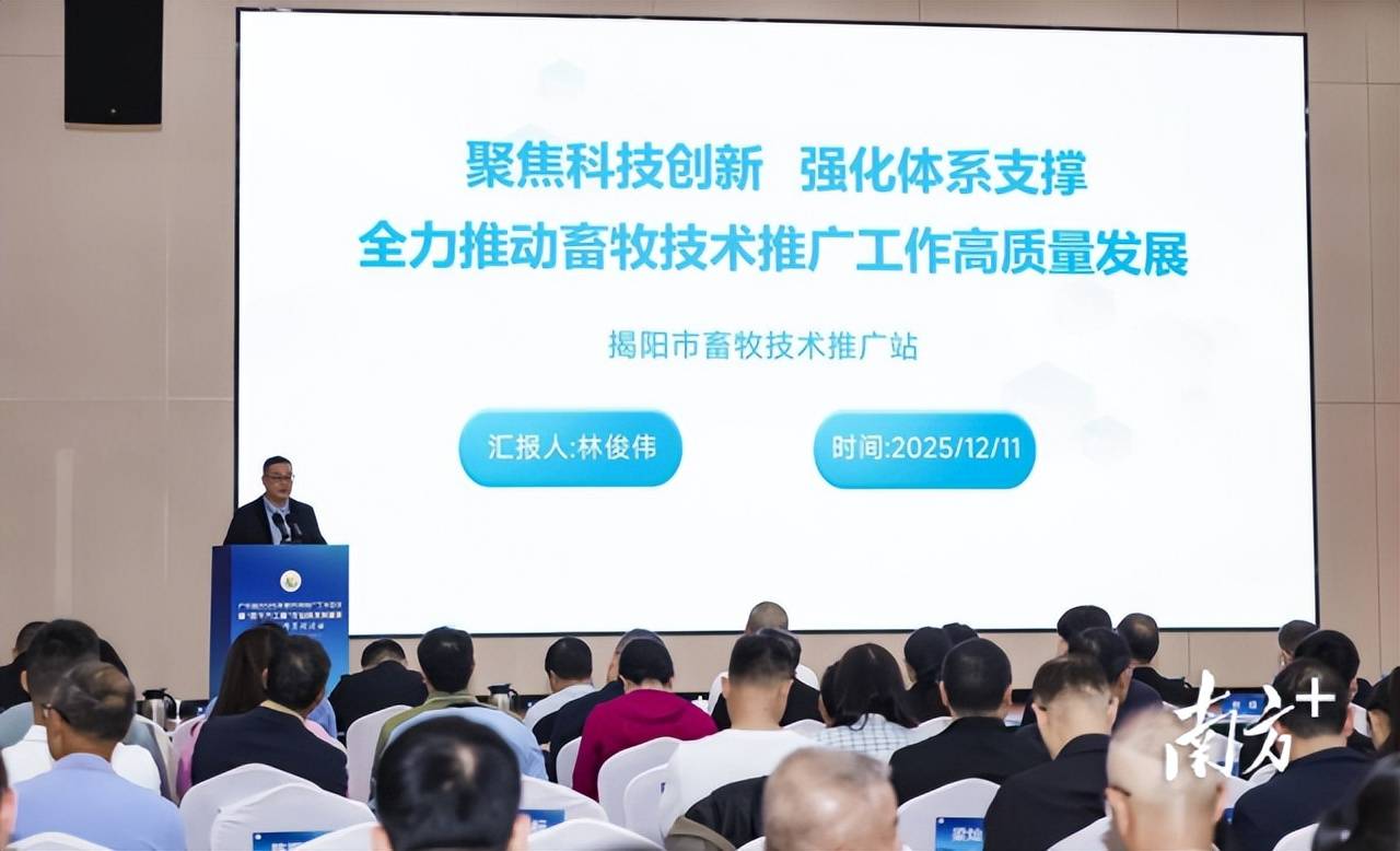 12月11日,由广东省农业农村厅主办的广东省2025年度农技推广工作会议暨“百县千镇万村高质量发展工程”农业科技特派员年度工作总结活动在广州召开。揭阳市收获7项省级荣誉,揭阳市畜牧技术推广站代表畜牧行业作典型经验分享。
