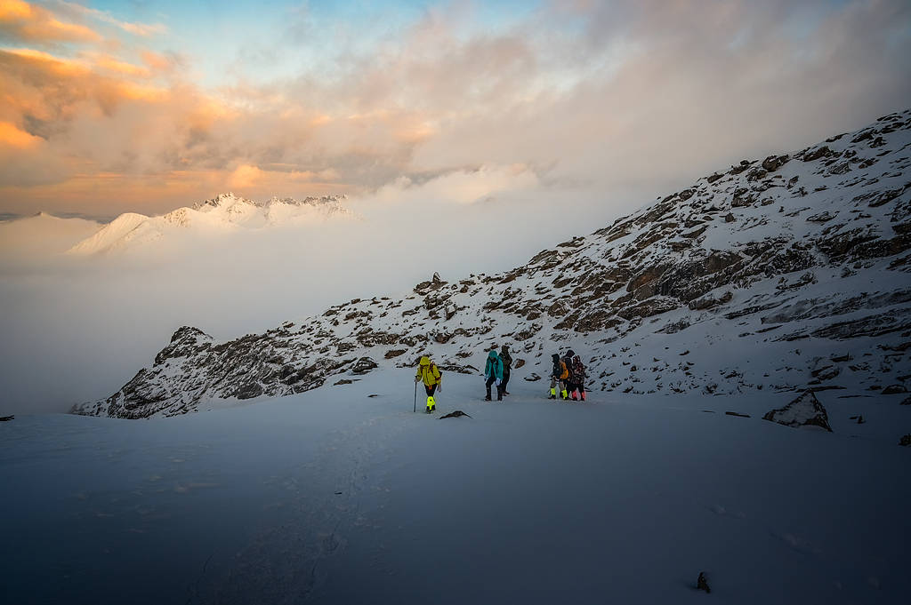 害怕失温,冲锋衣里的装备她们一件不敢落,一层速干服,二层抓绒,三层羽绒,套两双羊毛袜。第二天出了营地两三公里,就快要到雪线。肖涵青闺蜜的嘴唇开始发紫,想吐。阿幸询问一系列身体状况,劝她下撤。
