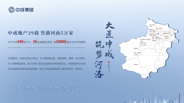 从精筑城市理想人居,到开启更多美好生活方式,中成集团始终坚持“好房子,中成造”,持续升级产品设计,描绘城市缤纷生活蓝图,参与到城市美好生活运营当中,获得了多座城市数万家业主的信赖和选择。在多年的开发历程中,中成集团深耕洛阳、偃师、伊川等地,匠心精筑中成•九州府、中成•九都城等30余座精品项目,在洛阳、偃师、伊川和伊滨区等地房地产行业享有良好声誉,赢得了客户的广泛喜爱与信任。