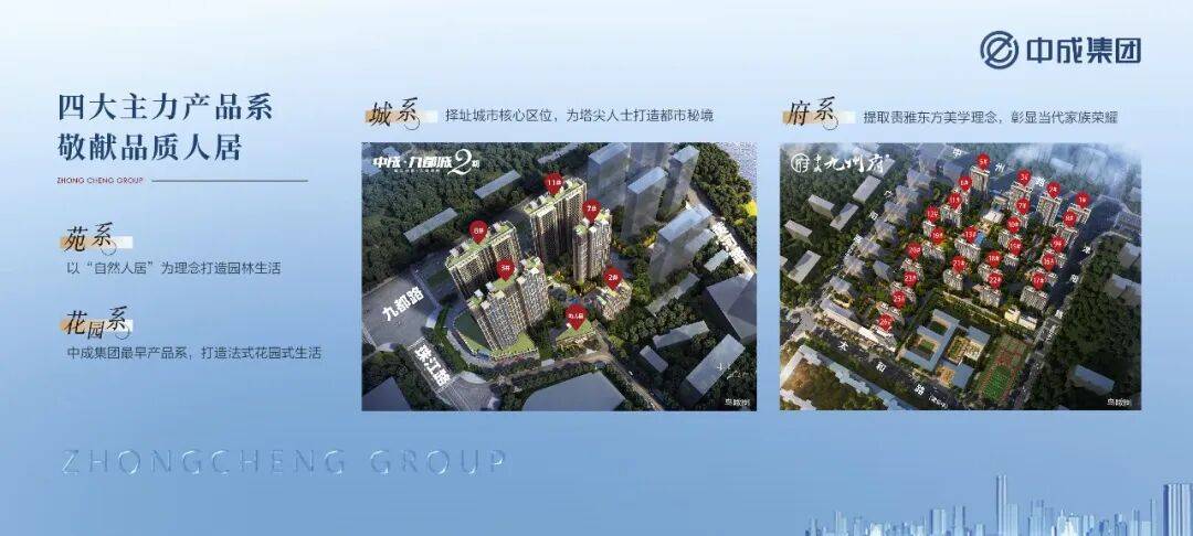 中成集团在发展过程中形成了苑系、花园系、城系、府系四大主力产品系。
