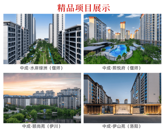 中成+地产:中成集团累计已开发商品房面积近500万平方米,深耕洛阳、偃师、巩义等地,共30余座精品项目,超50000家业主选择在中成安居乐业,其品牌在洛阳、偃师、巩义和新安等地房地产行业享有良好声誉。