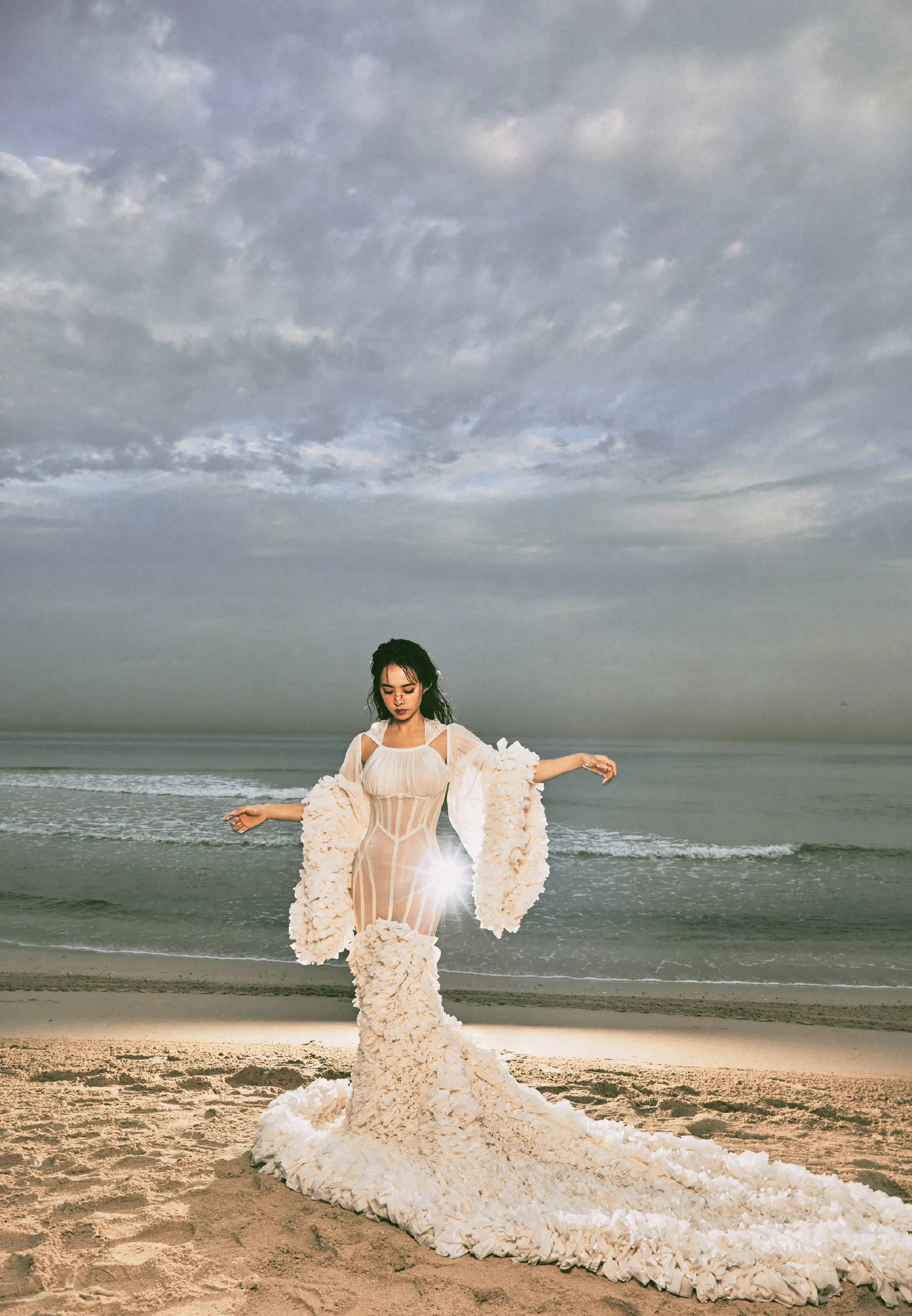蔡依林在海边拍大片,氛围感拉满。