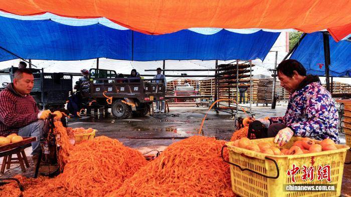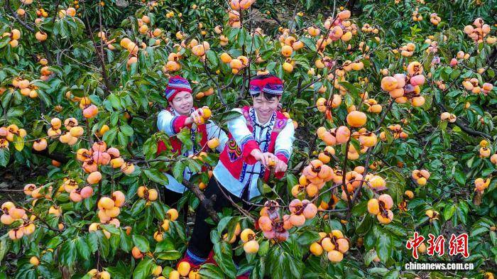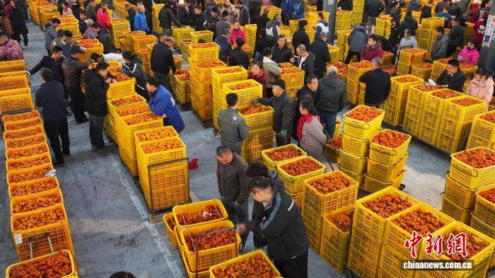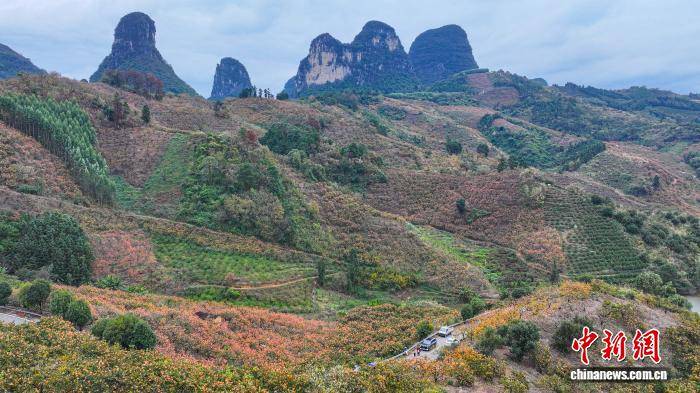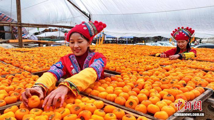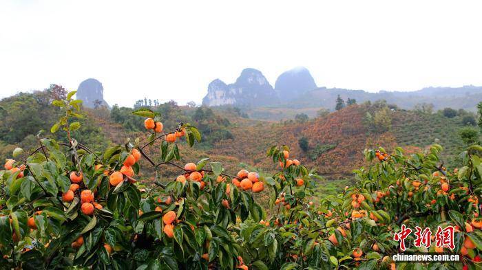 时值桂北柿子丰收采摘季,12月14日,广西桂林市平乐县的果农们正忙着采收、售卖柿子,同时将鲜果削皮晾晒成柿饼后,运往交易集市销售给包装加工企业进行深加工;当地柿子生产加工企业以柿子为核心原料大力拓展精深加工边界,创新开发出柿子酥、柿子糕、柿子饮品、“冰柿”、“黄金柿饼”等系列新产品,通过与全国性零售渠道合作,凭借优良口感与新颖包装吸引年轻消费群体,推动柿子从传统农产品转变为高附加值商品,不仅实现了传统农业转型升级,也让这一地方特产走向了更广阔的国内外市场。图为广西桂林市平乐县桥亭乡柿子产业种植基地。杨宗盛 摄