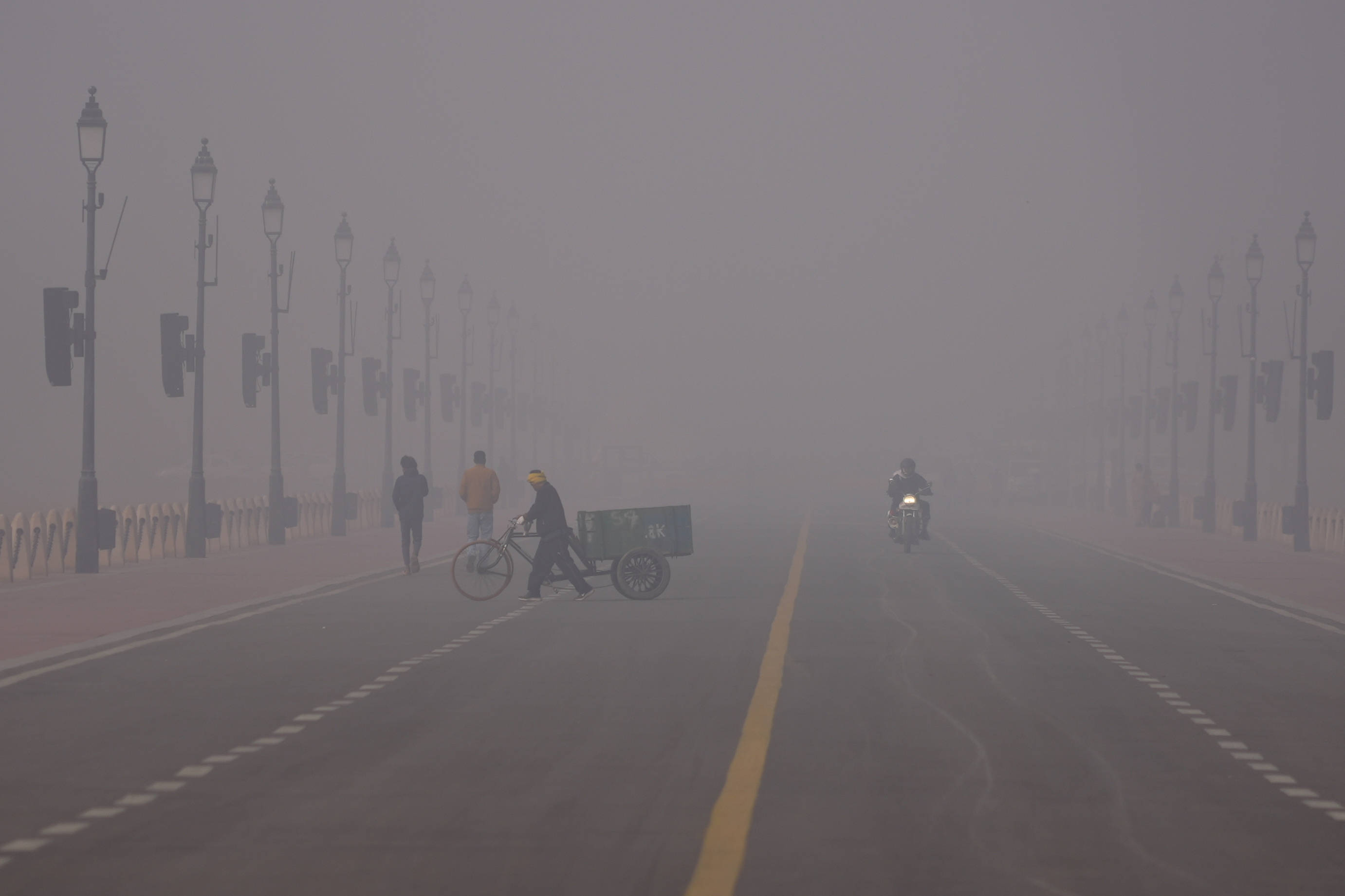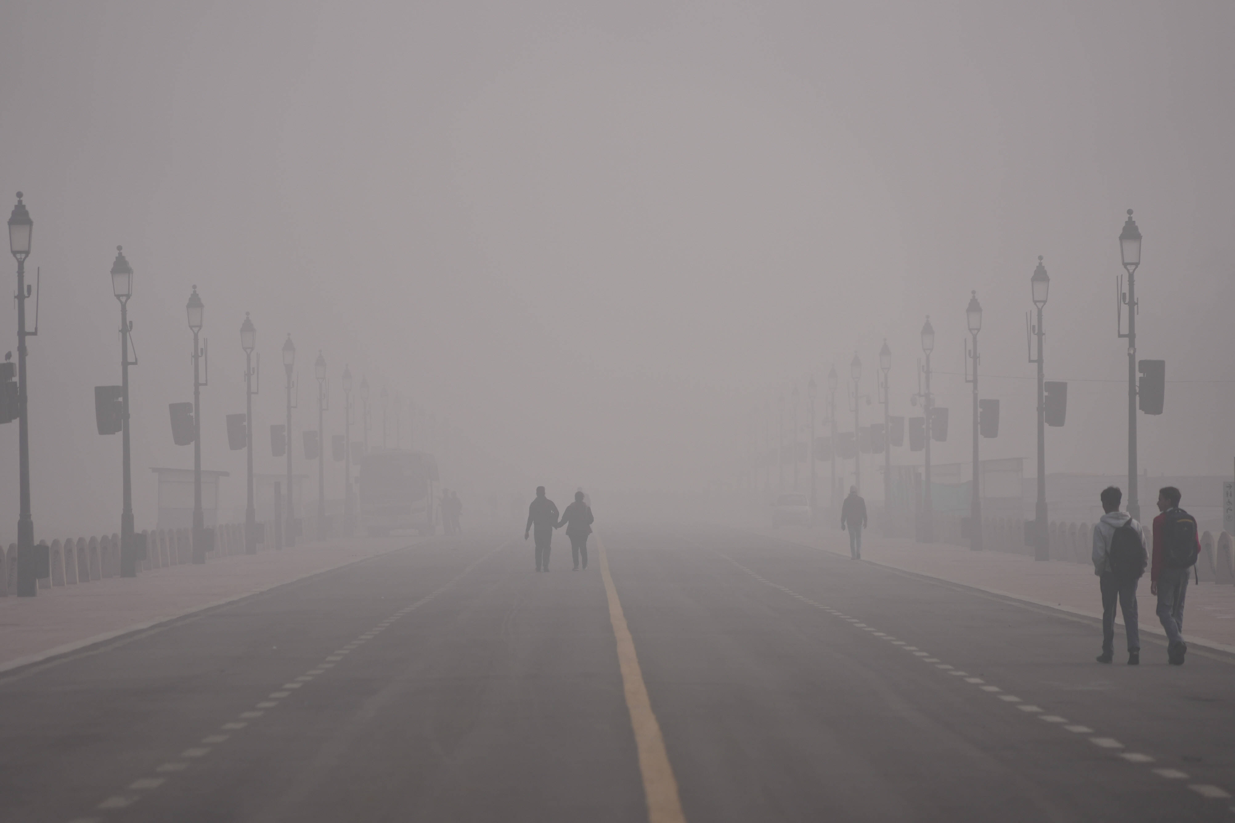 12月15日,在印度新德里,人们走在雾霾笼罩的道路上。 新华社/美联