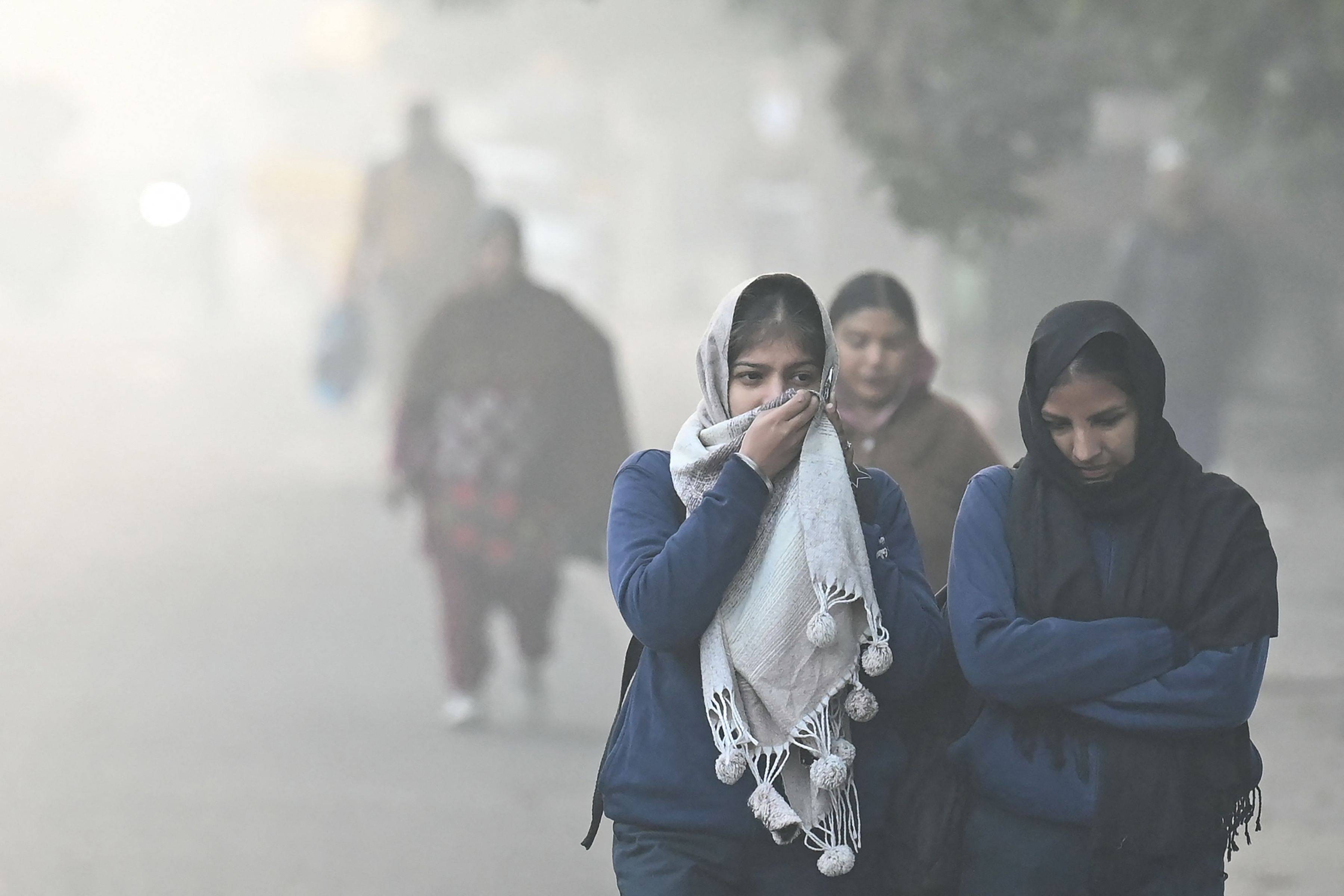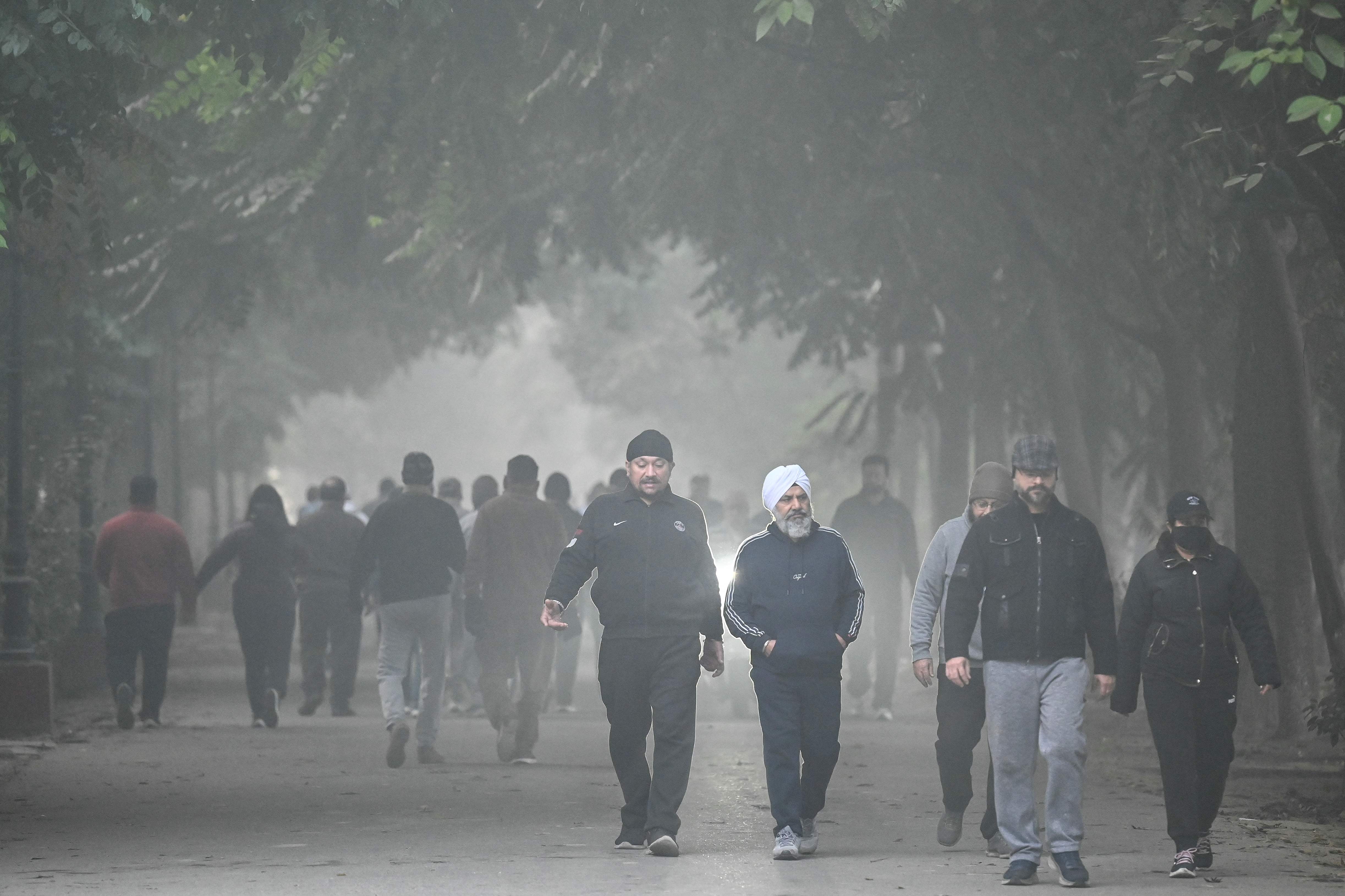 12月15日,在印度阿姆利则,人们走在雾霾笼罩的道路上。 新华社/法新