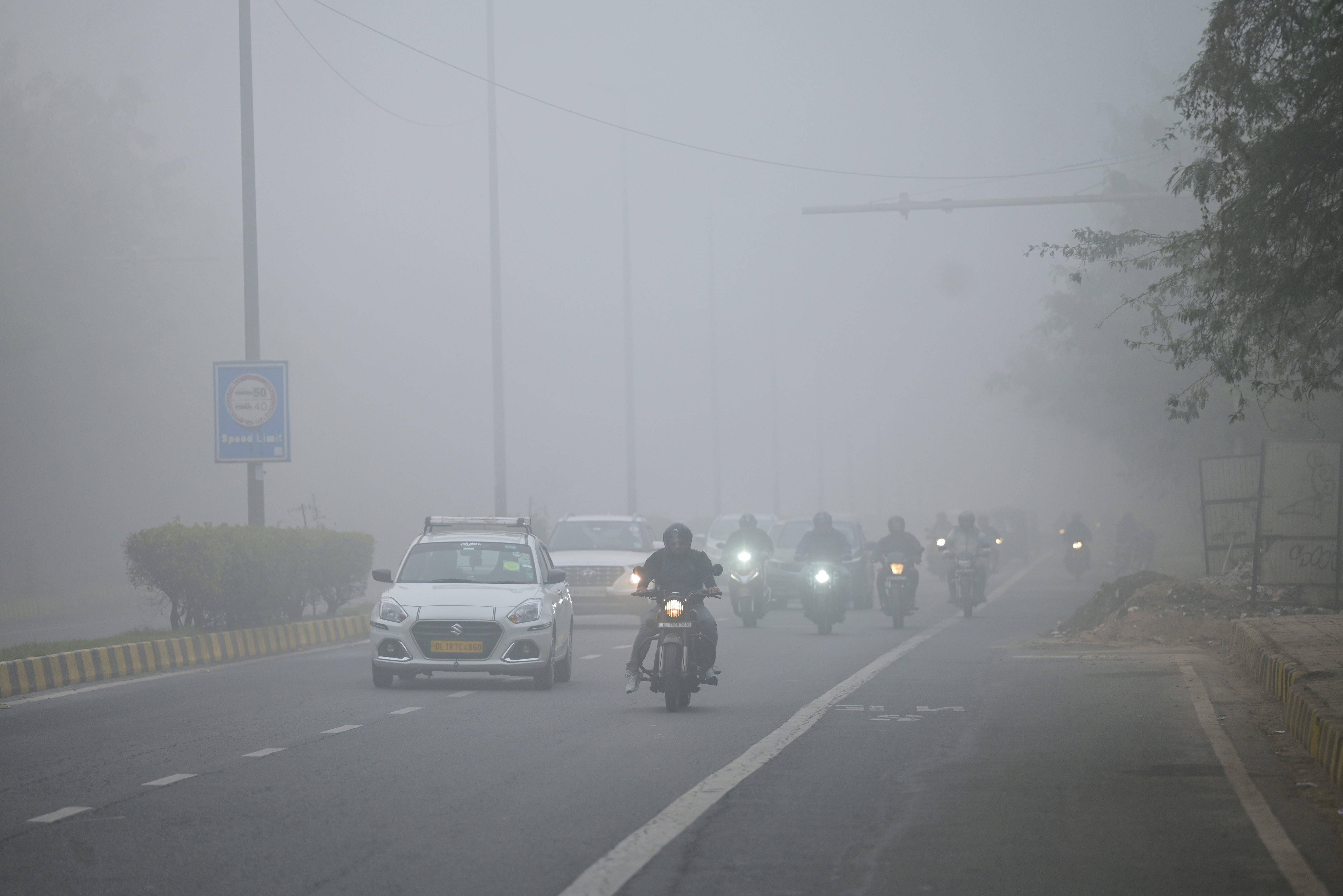 12月15日,在印度新德里,车辆行驶在雾霾笼罩的道路上。 新华社/美联