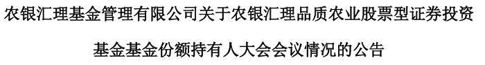 12月9日,农银汇理基金发布公告称,近期农银品质农业股票基金以通讯方式召开了基金份额持有人大会,会议审议了《关于农银汇理品质农业股票型证券投资基金持续运作的议案》。