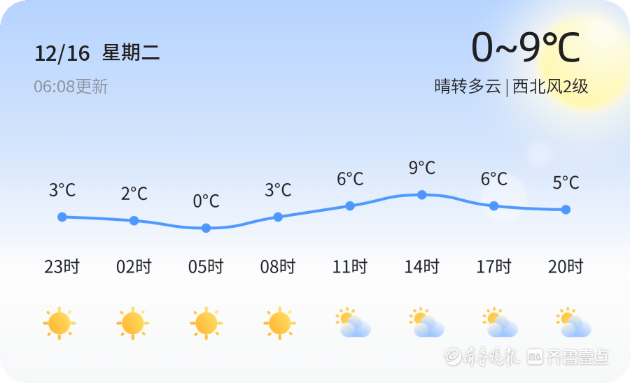 今天是12月16日,星期二,农历十月廿七。菏泽市今天天气晴转多云,气温在0℃到9℃之间,西北风2级。目前,菏泽的温度为0.7℃,湿度为91%,PM2.5指数为132,空气质量为轻度污染。各区天气情况基本一致,以晴到多云为主,风力较小,体感温度较低,市民出行需注意保暖。明天天气较今日有所变化,将以多云转晴为主,气温略有上升,最低气温为-1℃,最高气温为10℃。风力依旧较小,西北风2级左右。相较于今天,明天的气温稍有回升,但早晚温差较大,市民仍需做好防寒保暖措施。未来三天,菏泽市天气以多云为主,偶有晴天。气温将在-2℃到12℃之间波动,风力持续较小,西北风2级左右。市民需注意天气变化,及时增减衣物,尤其是早晚出行时,应做好防寒准备。特别提醒患有呼吸道疾病和慢性病的市民,近期湿度较大,需注意防范疾病复发。温馨提示