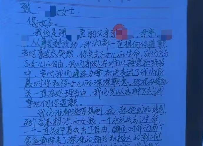 被告人父母提交的道歉信。受访者供图