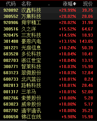 09:52 北证50指数涨逾2%,云星宇、美之高、三友科技、汉鑫科技涨超10%。