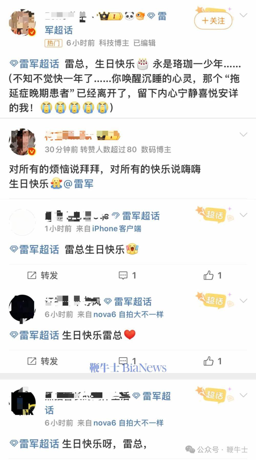 有网友在祝福雷军的同时,表达了对小米的热爱与支持,还提到了小米公司的故事,他称,“小米的故事,从来不只是商业的征程,更是无数普通人相信科技、相信热爱的集体叙事。”其他网友也纷纷送上生日祝福。