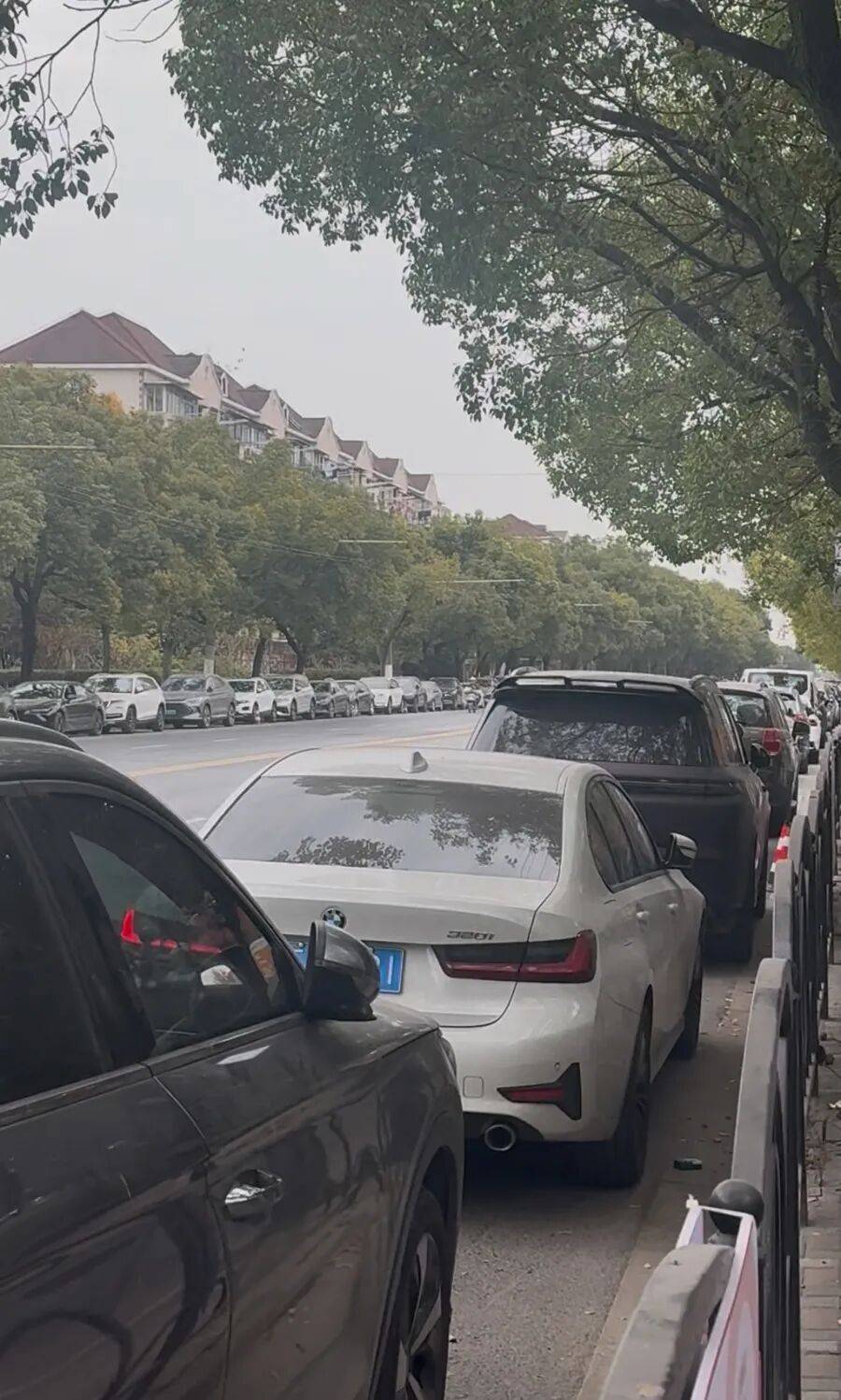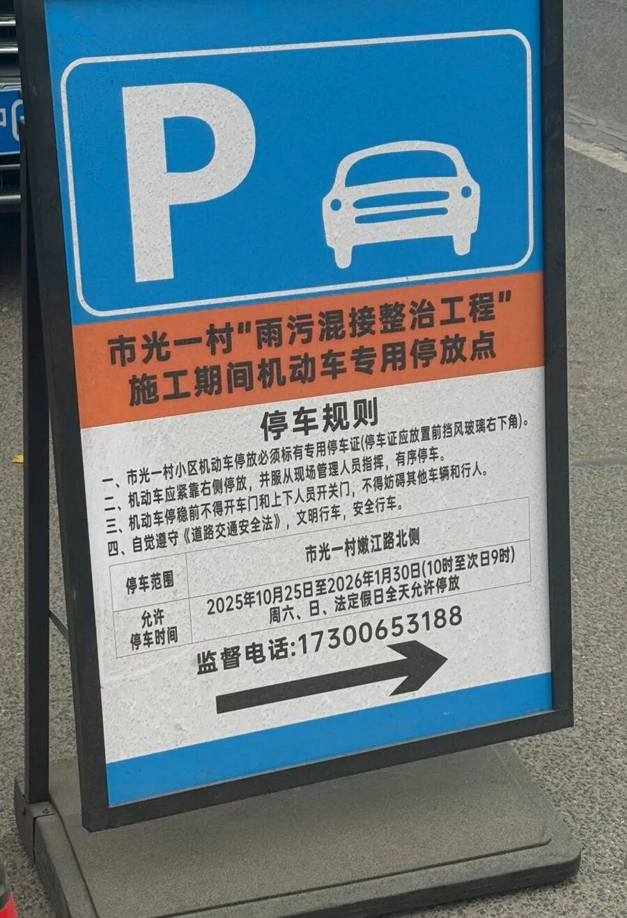 记者注意到,殷行街道和曹杨新村街道都有指示牌,将附近的非主干道上的非机动车道划分给受影响的小区居民停车。但部分居民告诉记者,这些停车位“远远不够”,居民需要提前下班“抢车位”。殷行街道的居民小欧很困惑:“没地方停车了,物业照常收停车费,这合理吗?”