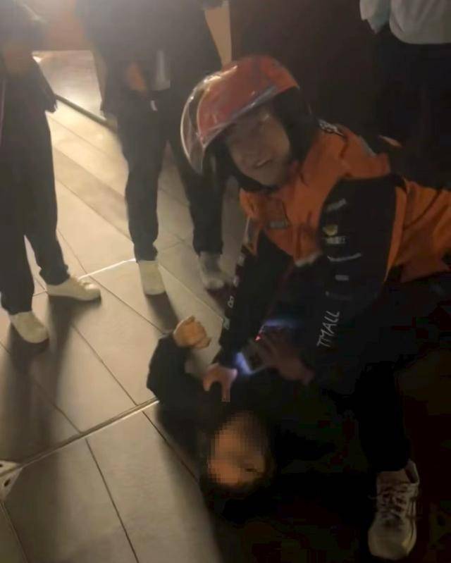 “我当时就在旁边招揽客人,看见那个外卖小哥跟着男的从电梯上冲出来,一个飞身把人撂倒,然后用力把他压住。”附近一家餐馆的女店员说,外卖小哥年纪看起来不大。