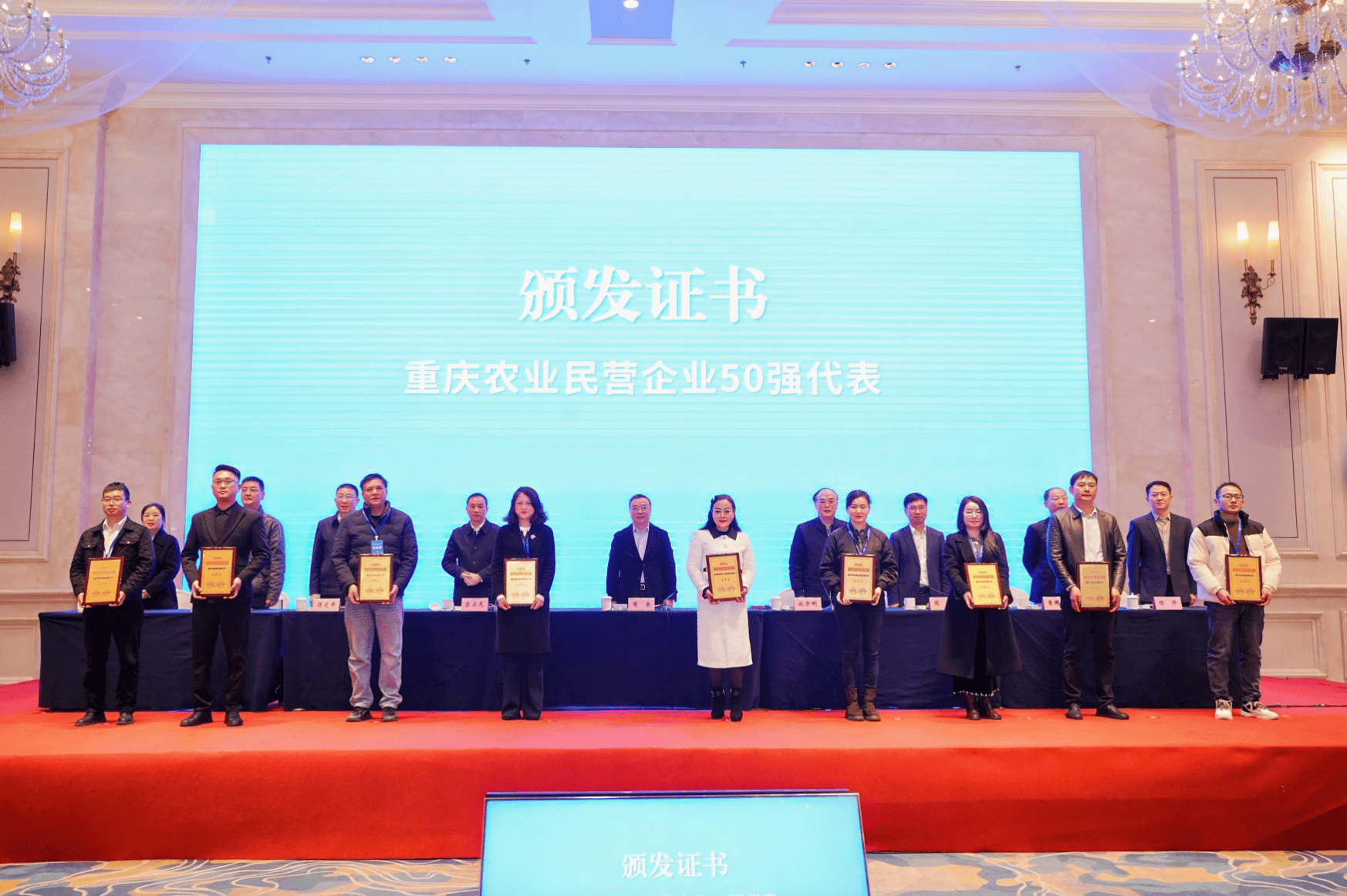 会议现场分别为重庆市“万企兴万村”行动案例库第二批入库案例代表、重庆市农业民营企业50强代表颁发了证书。